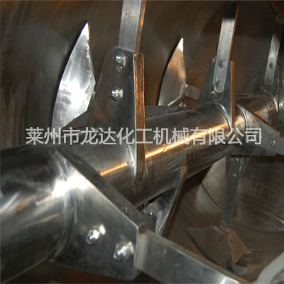 犁刀混合機由圓筒體、傳動機構(gòu)、犁刀、飛刀四部組成;工作時,犁刀做圓周運動,物料被犁刀刀面分流成兩個方向形成雙向物料流,與兩側(cè)犁刀分流過來的物料相互交叉形成對流,當(dāng)物料流經(jīng)高速飛刀時又被高速飛刀葉片剪切和拋灑,從而在較短時間內(nèi)達到均勻混合。本機的混合精度高,混合時不產(chǎn)生離析,尤其對于容易團聚的物料,可以起到解聚和打散的作用。